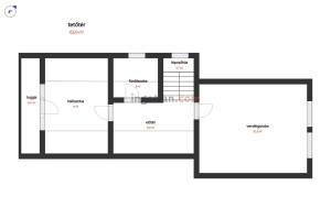 -Földszint: nappali + konyha + étkező + kamra + fürdő + külön wc + közlekedő